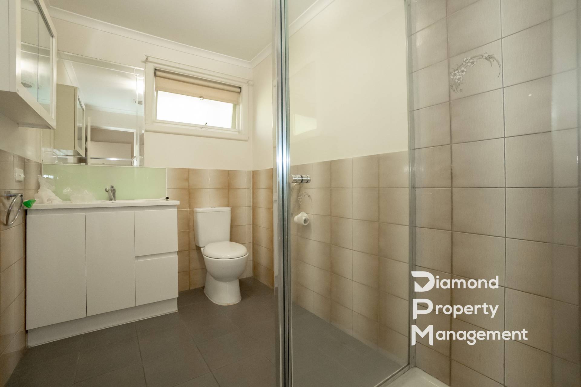 - Bathroom with shower, vanity and separate toilet