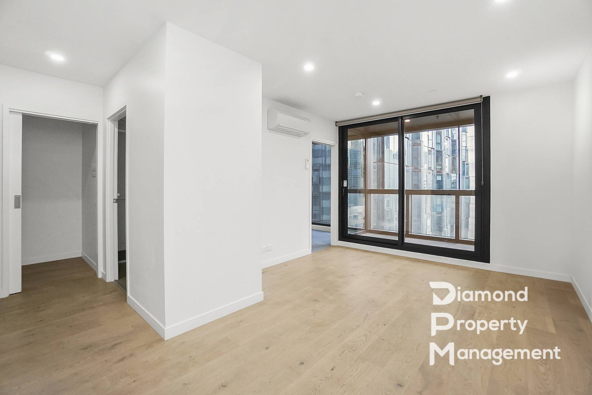 - Floor to ceiling windows and a balcony with beautiful city view