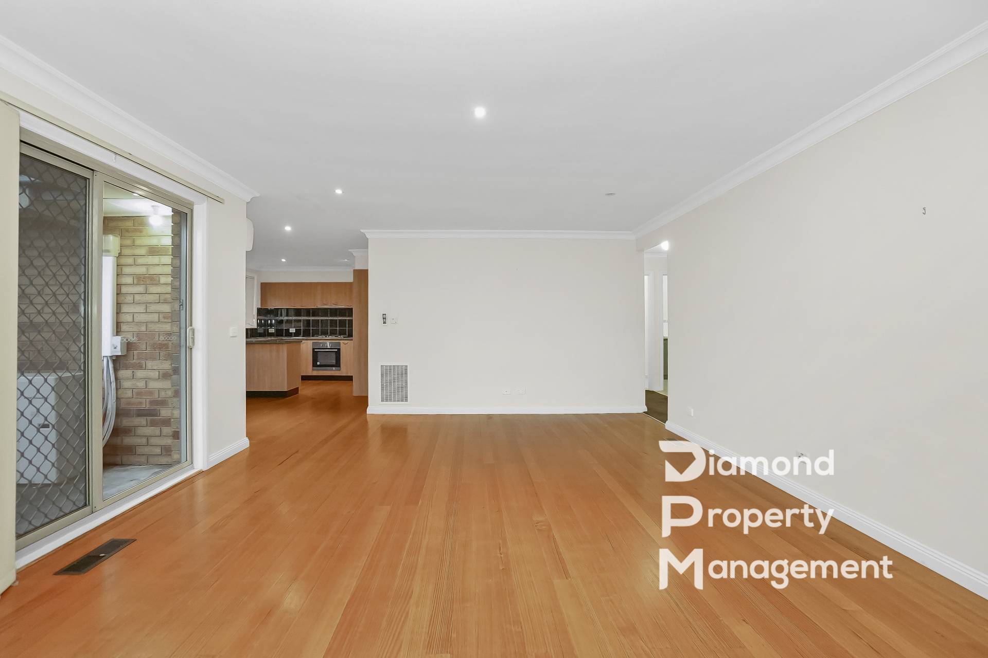• Open plan north facing living and dining area with polished floorboards