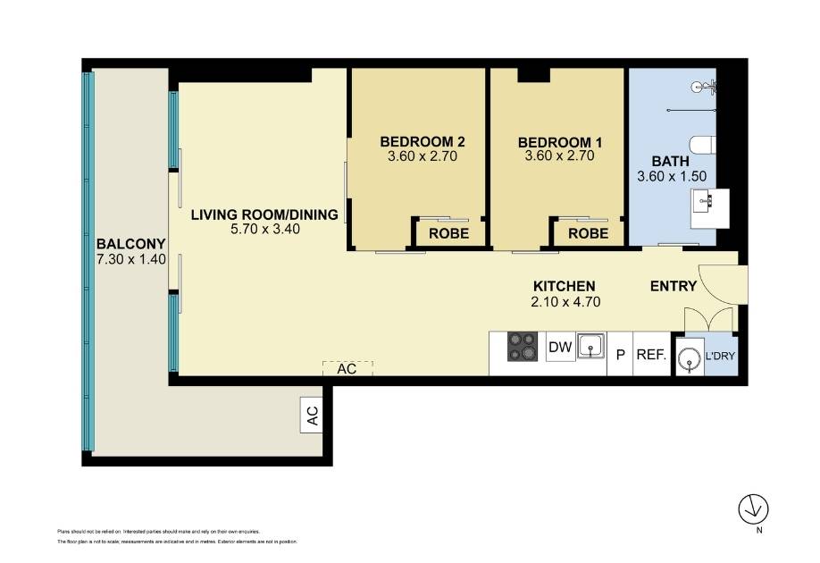- Two bedrooms with mirrored robes