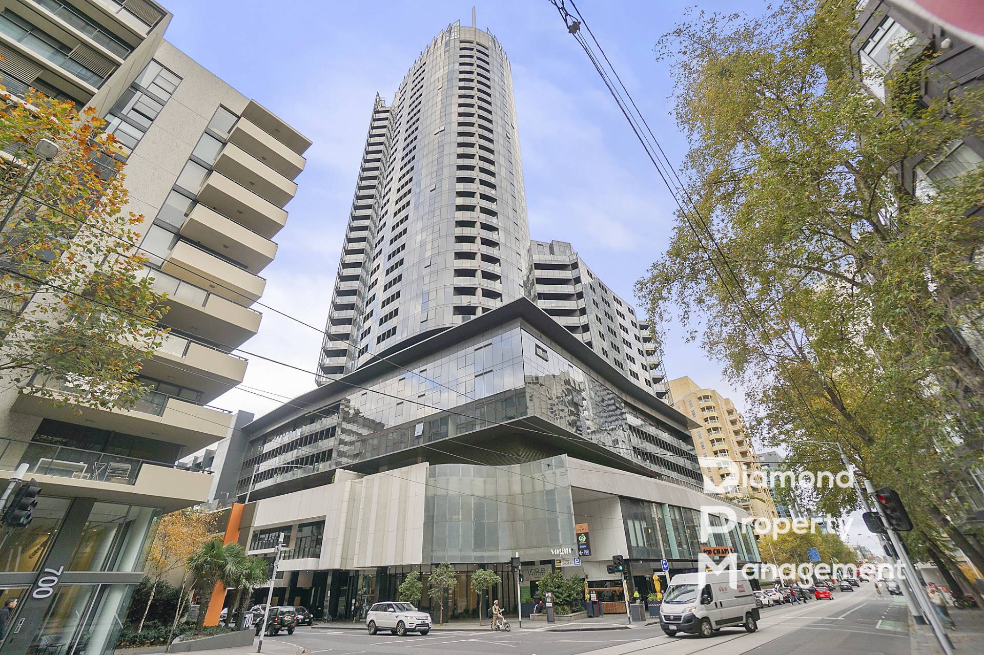 Vogue Apartments South Yarra has the all the modern facilities needed for today’s busy lifestyles. It consists of apartments spread over 30 levels, including a heated indoor lap pool, steam room, sauna, tennis court and gymnasium. The entrance to the resident’s area is located on the corner of Chapel St and Malcolm St, South Yarra.