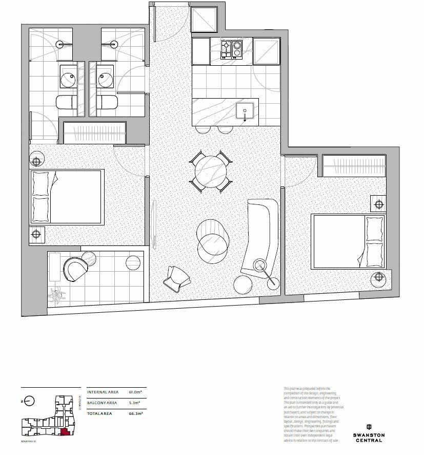 Looking for the perfect place to call home in Melbourne? Look no further than Swanston Central! This 2 bedroom, 2 bathroom apartment is fully furnished and ready for you to move in.