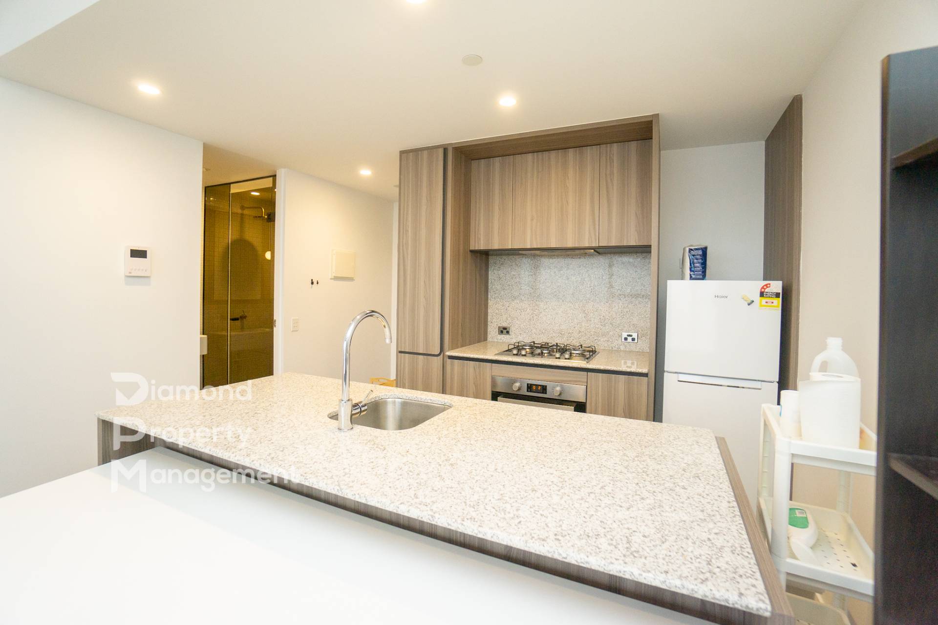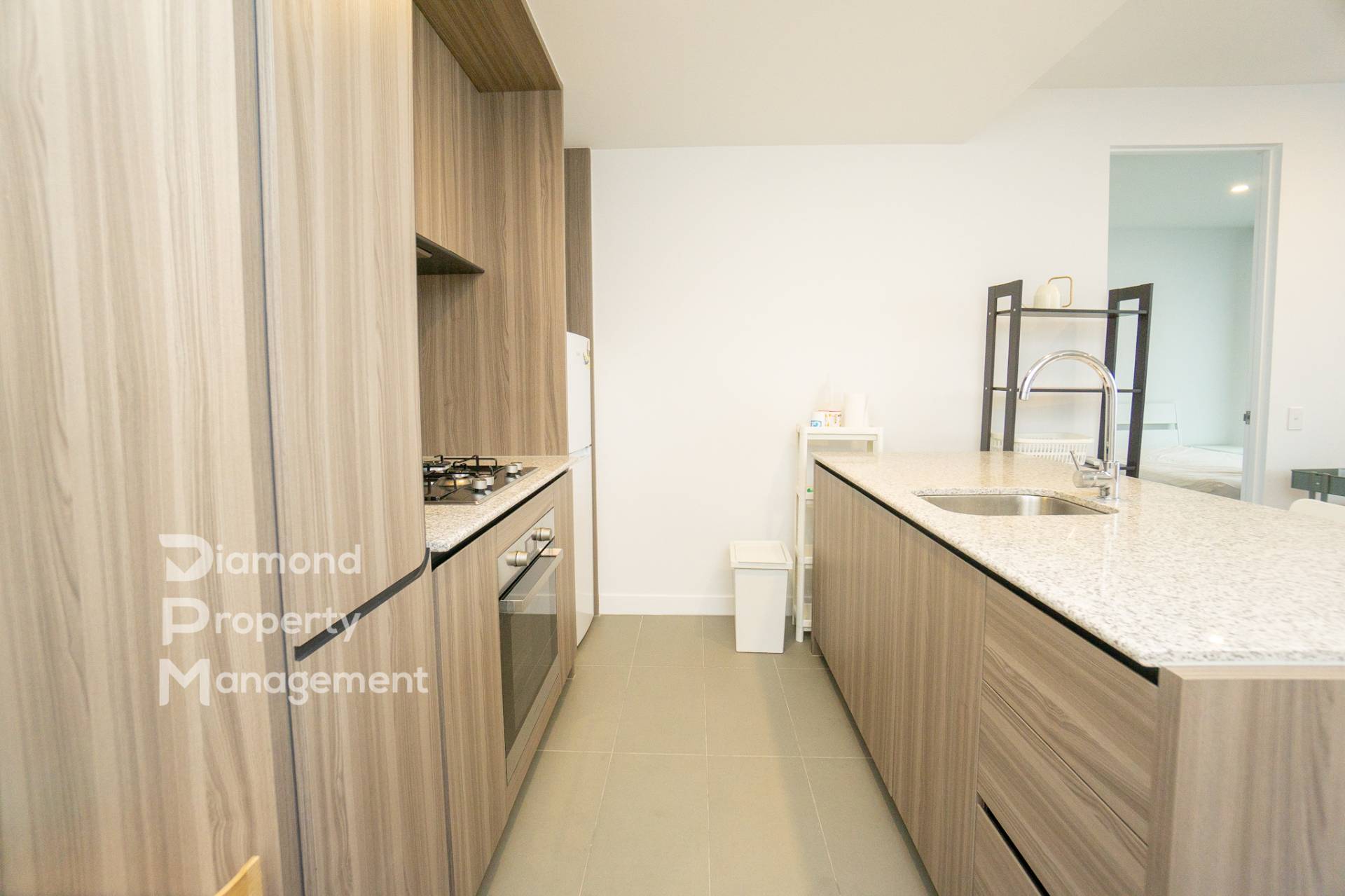 - Open plan kitchen offering quality stone bench tops, gas cook top, built-in oven, fridge and ample storage place